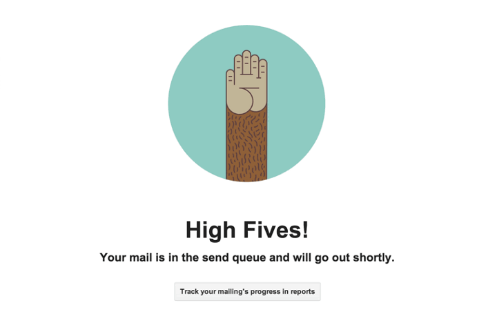 To lighten the situation, MailChimp throws up a congratulatory animated high-5 from the brand’s chimp mascot, Freddie.